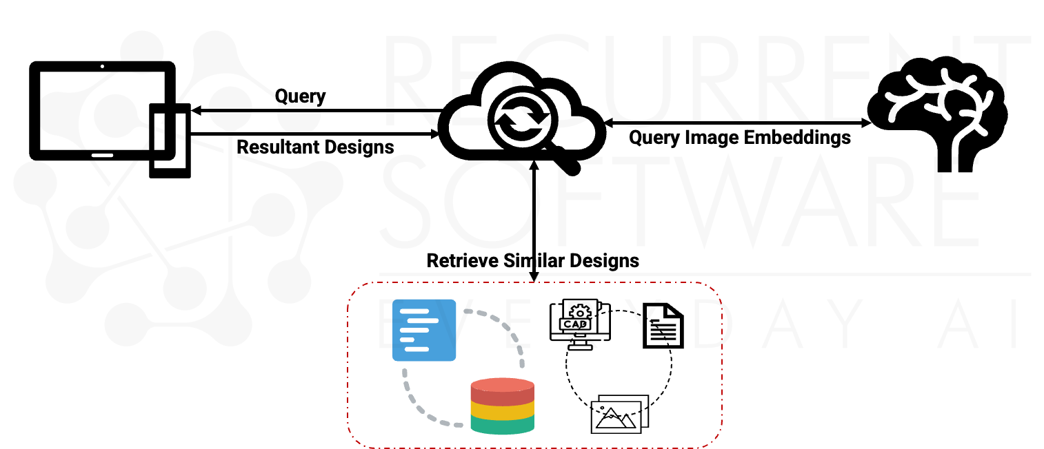 The core idea of the approach is to create a joint embedding space across 2D images, 3D CAD models, and text descriptions using deep learning. By representing all three modalities as embeddings in a unified vector space, we enable seamless cross-modal searches. This allows for efficient retrieval of designs based on nearest neighbor searches, significantly improving the accuracy and speed of the design retrieval and comparison processes.